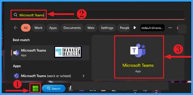 - Click the Start menu and then search Microsoft Teams in the search box