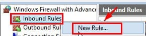 On the Windows Firewall with Advanced Security page, Right-click on Inbound Rules and click on the new rule.