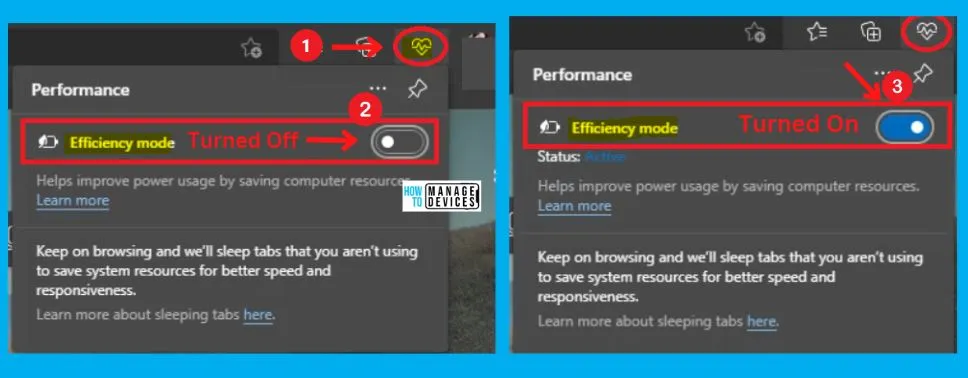 With the help of the performance-enhancing efficiency mode feature, the edge background tab sleeps after 5 minutes of inactivity. The Efficiency tab also helps you reallocate CPU and RAM resources. The following are the steps to enable Efficiency mode in the Edge browser.