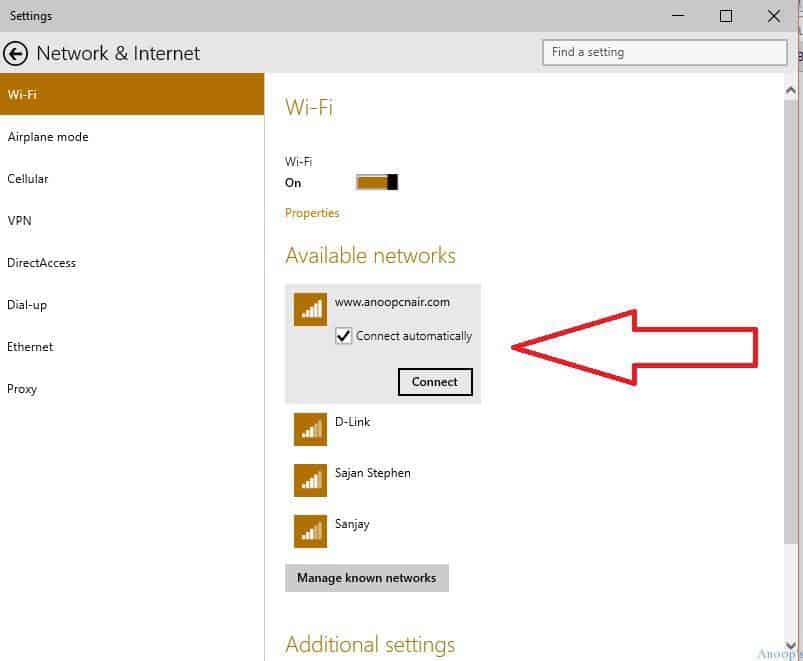The screenshot below helps you show the network and internet window. A connect automatically option is shown below.