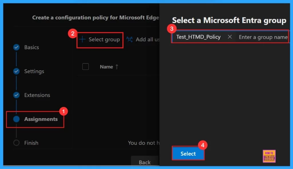 The Assignments tab serves as the control center for targeting your policy deployment. By selecting a group, we can limit the policy’s application to only those users.