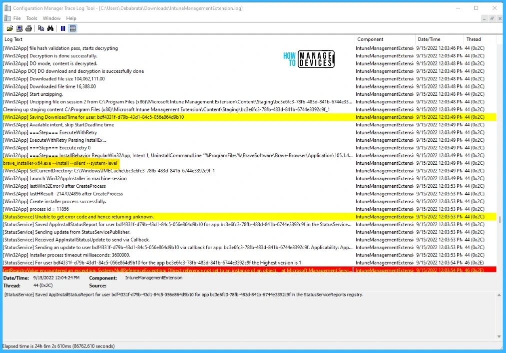 The Intune management extension is the client-side component to manage the MDM Intune Win 32 application deployment. Learn more about Intune Win32 App Issues Troubleshooting Client-Side Process Flow.