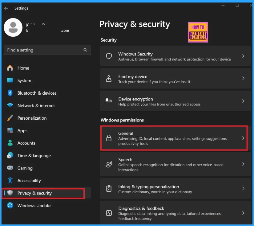 After selecting the general option, you may get many options that are related to the advertising ID, local content, app launches, setting suggestions and productivity tools. Here, you can see the option ”Let Windows improve start and Search results by tracking app launches”.