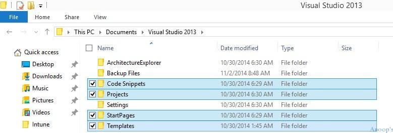This is the Visual studio 2013 screenshot. Here you should select the This PC > Documents > Visual studio 2013.