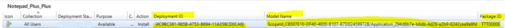 Once we complete the deployment window (on the SCCM Admin Console), we will notice a new entry in the SMS_ApplicationAssignment class. 6
