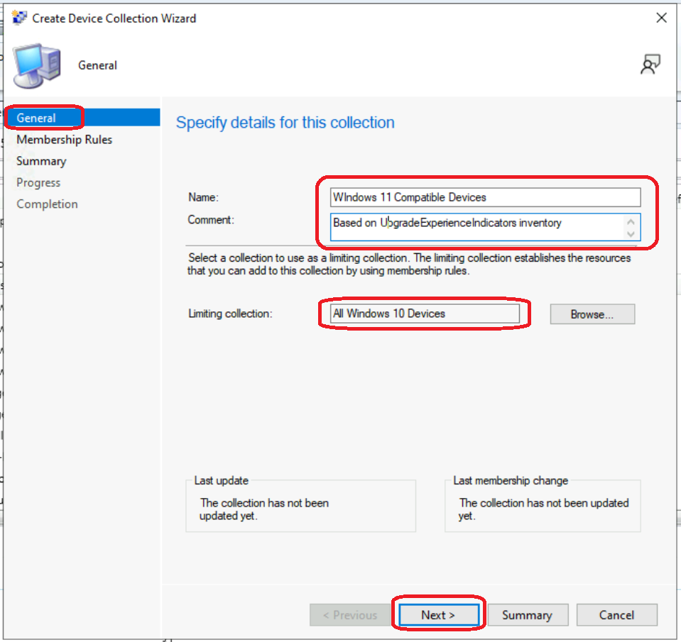 • Collection Name: Windows 11 Upgrade Compatible Devices