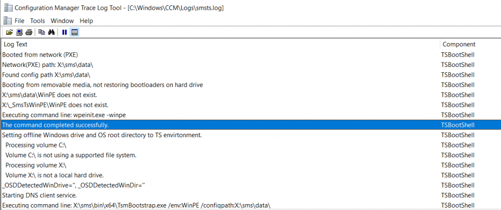 SMSTS.log contains a lot of redundant information, so learning to read It effectively is essential. CMTrace is one of the Configuration Manager tools. It allows you to view and monitor log files and analyze them by highlighting, filtering, and error lookup.