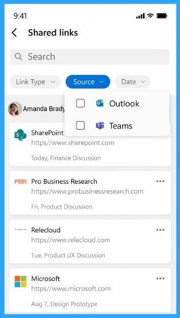 | Teams | You can now get shared links from teams. If colleagues sent any important links or files in the past, you can find them with this new feature. |